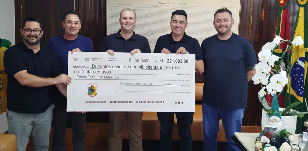 Na segunda-feira, 22 de dezembro, representantes da Câmara de Vereadores de São José do Cedro, liderados pelo presidente Júlio Rubin, estiveram no gabinete do prefeito para oficializar a devolução de parte do duodécimo ao Poder Executivo Municipal. O ato contou com a presença do prefeito Fernando Will e do vice-prefeito Enio Carossi.