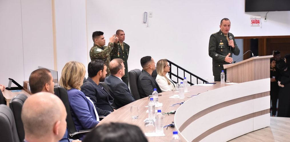 A solenidade foi conduzida pelo presidente do Legislativo, vereador Ravier Centenaro (PSD), e contou com a presença de autoridades civis e militares, entre elas o comandante do 14º RCMec, coronel Luiz Fernando Coradini e o tenente-coronel André Luiz Grigulo, comandante do 12º Batalhão de Bombeiros Militar.