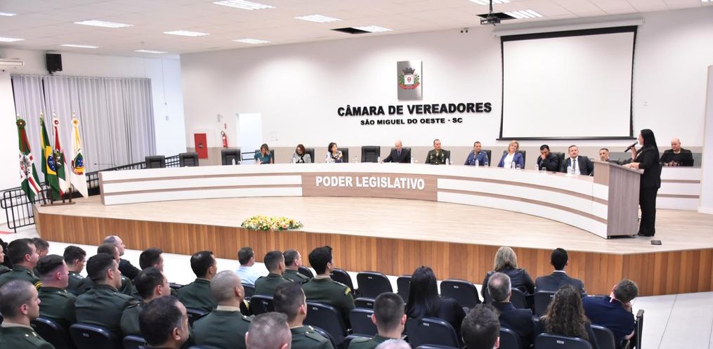 A Câmara de Vereadores de São Miguel do Oeste realizou, na noite da última quinta-feira (04), uma Sessão Solene em homenagem aos 183 anos do 14º Regimento de Cavalaria Mecanizado.