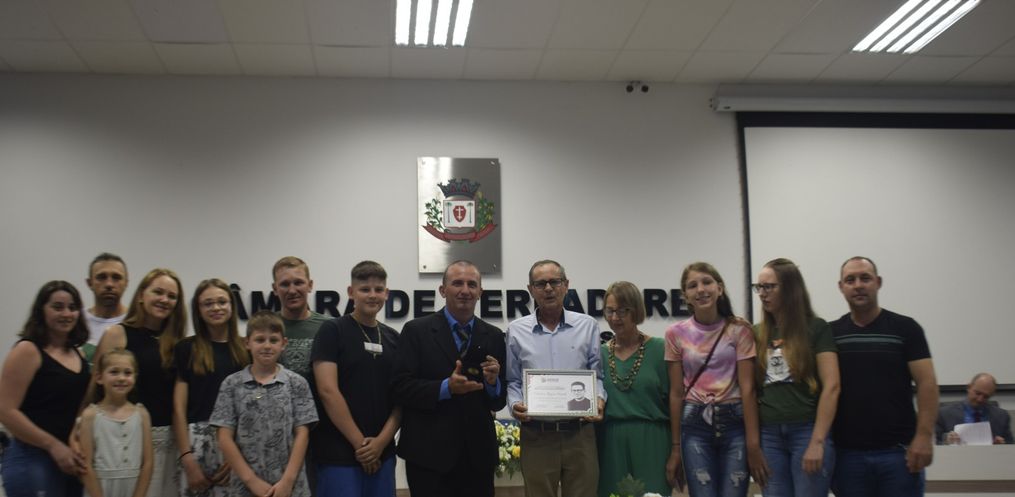 A Câmara de Vereadores entregou, na noite de sexta-feira, as medalhas de mérito Legislativo Padre Aurélio Canzi. A homenagem foi instituída por uma lei municipal e tem o objetivo de homenagear pioneiros e cidadãos que colaboraram para o desenvolvimento do município e que se destacaram em suas atividades. Na cerimônia desta sexta, cada vereador indicou uma pessoa para receber a comenda. Desse modo, 13 foram homenageadas. A cerimônia iniciou as sete hores da noite no plenário da câmara de vereadores e foi transmitida ao vivo pela rádio Peperi.