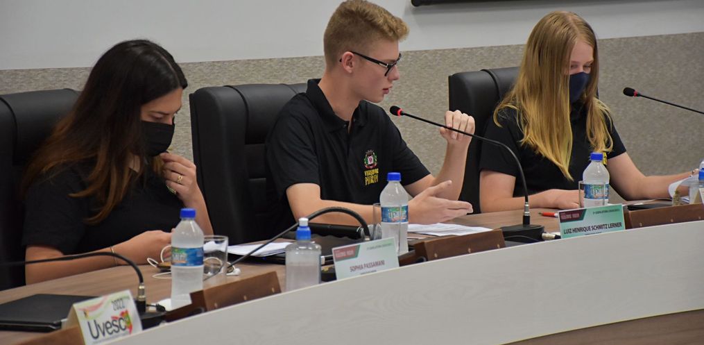 A Câmara Mirim de São Miguel do Oeste realizou a primeira sessão de 2022 nesta quinta-feira (3). O encontro, realizado no plenário do Poder Legislativo, foi marcado pela eleição da Mesa Diretora para este ano. Foram eleitos como presidente Luiz Lerner; vice-presidente Sofia Passamani; primeira secretária Thaís Schaefer Christ; e segunda secretária Tiffani Gabrieli Haack. Todos foram eleitos por unanimidade dos votos.