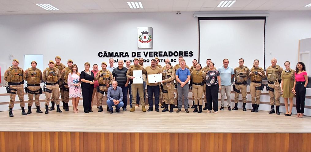 A Câmara de Vereadores de São Miguel do Oeste entregou, nesta terça-feira, 5, uma moção de aplauso a Polícia Militar pela passagem dos 33 anos de instalação do 11º Batalhão de Polícia da Fronteira. O documento foi do vereador Paulo Drumm e subscrito pelos demais vereadores. O autor da moção lembraou do histórico da instituição, que começa em 1946, quando foi instalado o primeiro destacamento policial militar no povoado que deu origem à Vila Oeste, pertencente ao antigo Território do Iguaçu. O destacamento policial era composto por cinco policiais militares, comandados pelo sargento PM Germano da Luz.
