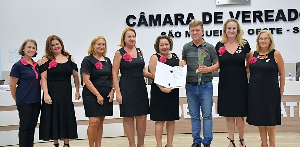 A sessão ordinária desta terça-feira, 08, da Câmara Municipal de São Miguel do Oeste, foi marcada por homenagens pela passagem do Dia Internacional da Mulher. A Moção de Aplauso 9/2022, de autoria de todos os vereadores, parabeniza e homenageia as mulheres pela data. Cada vereador indicou uma mulher ou entidade a ser homenageada, para quem entregou uma cópia da moção e uma lembrança.