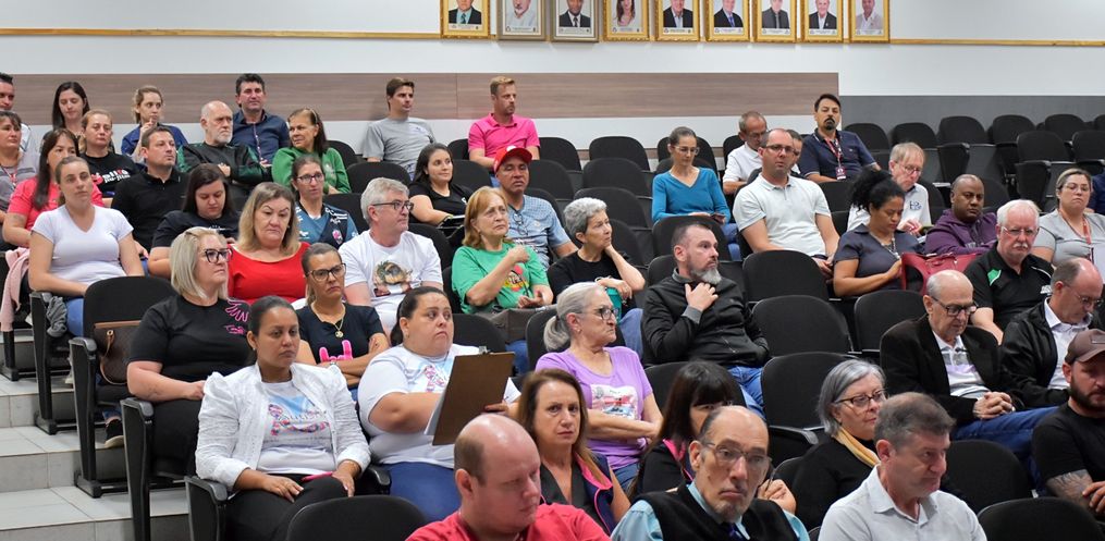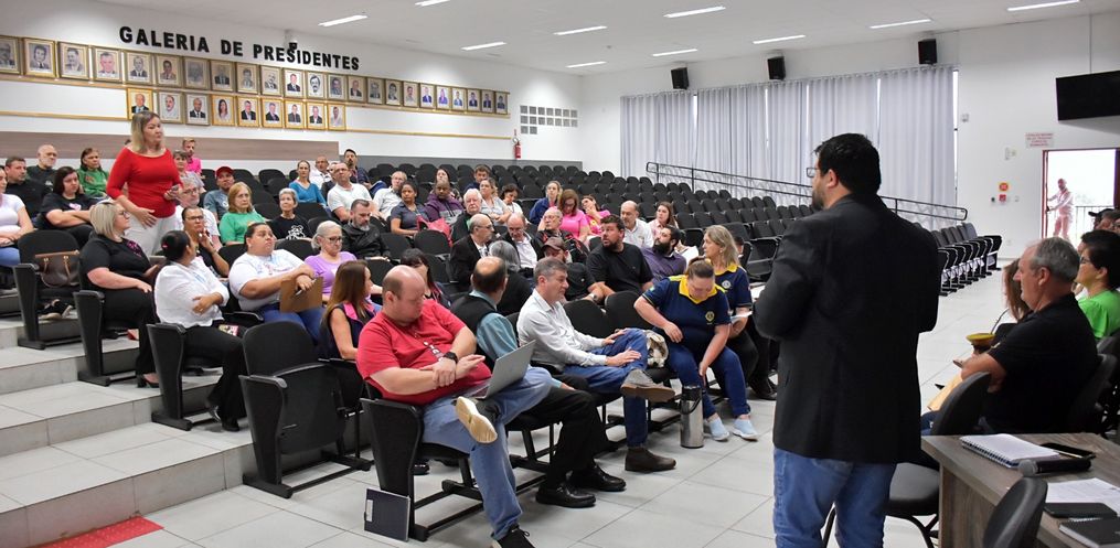 Em reunião no plenário da Câmara de Vereadores na manhã desta quinta-feira (23), vereadores, representantes de entidades e membros do Poder Executivo Municipal debateram sobre as emendas impositivas. O evento buscou esclarecer pontos da legislação que prevê a destinação de 1% do orçamento do Município para ser indicado pelos vereadores, com execução obrigatória pelo Poder Executivo. A metade do valor destinado deve obrigatoriamente ir para a saúde.