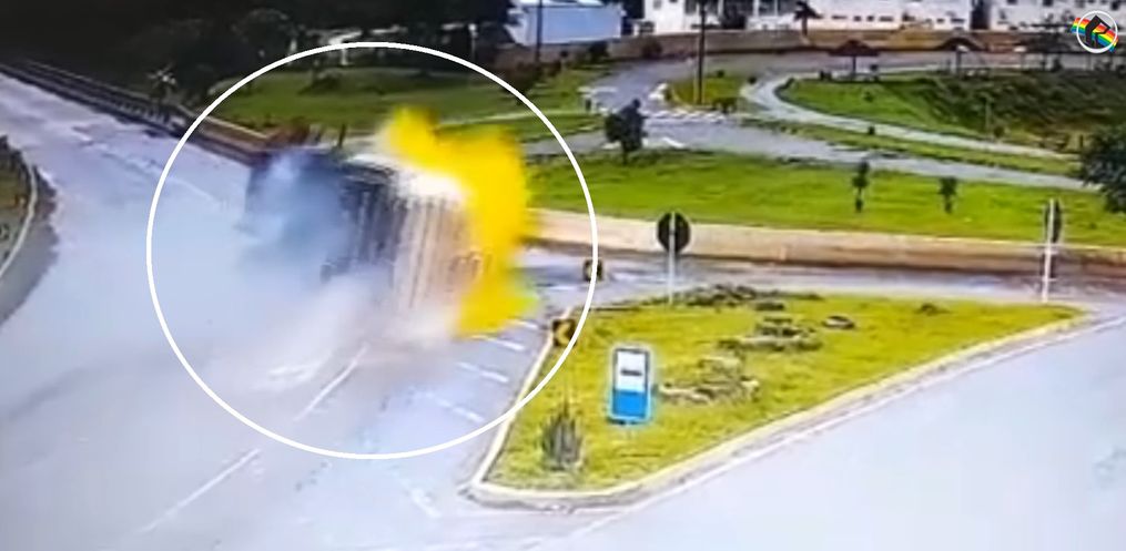 As imagens de uma câmera de segurança da Khronos, divulgadas pelo programa Som e Café News, da Rádio Oeste Capital, mostram o exato momento em que o caminhão tanque carregado de óleo vegetal perde o controle e tomba às margens da ponte. As guarnições de socorro do Corpo de Bombeiros, seguem para o local.