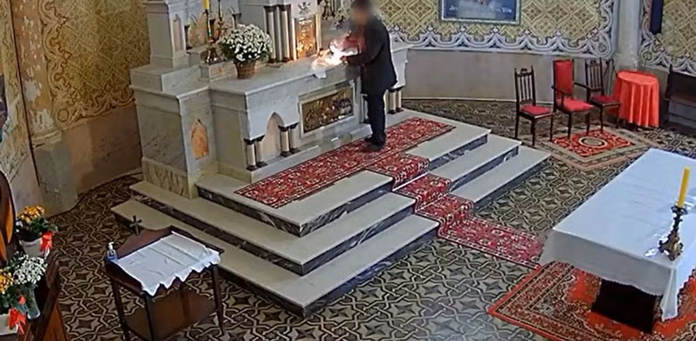 Um homem foi flagrado por uma câmera de monitoramento deixando um explosivo no altar de uma igreja histórica em Itaiópolis, no Norte de Santa Catarina, na tarde de quarta-feira, 30. Ele saiu correndo após deixar o artefato acionado embaixo de um pano, na frente do sacrário.