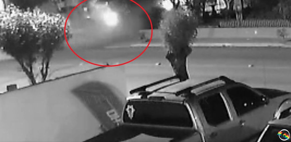 Uma câmera de segurança, da empresa Tucho Multimarcas, registrou o exato momento da colisão entre um Santana com placas de Anchieta e um Onix de São Miguel do Oeste.