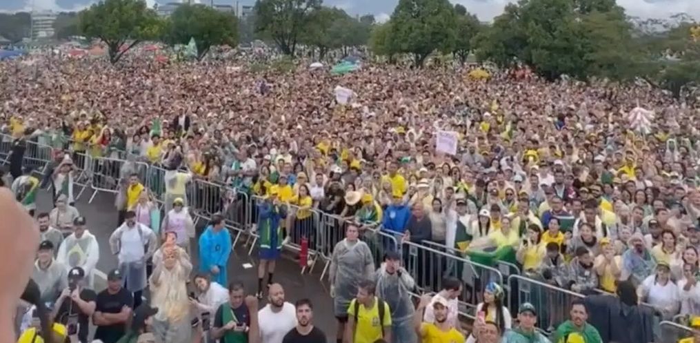 O deputado pediu ao público para não caminhar até a Praça dos Três Poderes, que fica a cerca de seis quilômetros do local da manifestação. O protesto ocorreu de forma pacífica, com faixas que pediam a libertação de Bolsonaro e defendiam a anistia.
