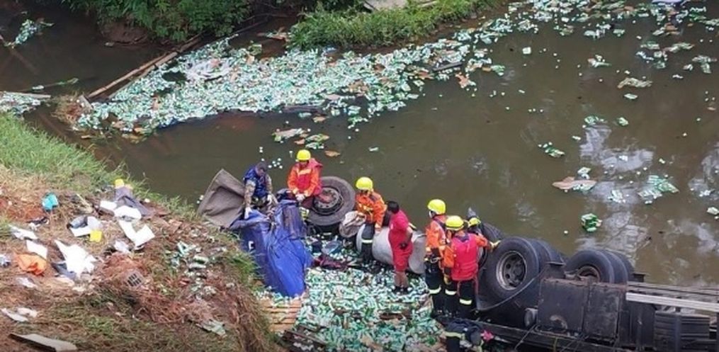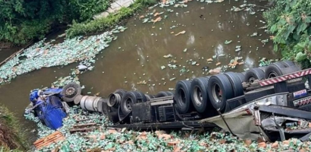 Com o impacto, o motorista, de 34 anos, ficou preso às ferragens da cabine e morreu ainda no local. A carga, composta por cervejas da marca Heineken, foi completamente danificada, com parte do material espalhado e outra parte derramada dentro do rio.