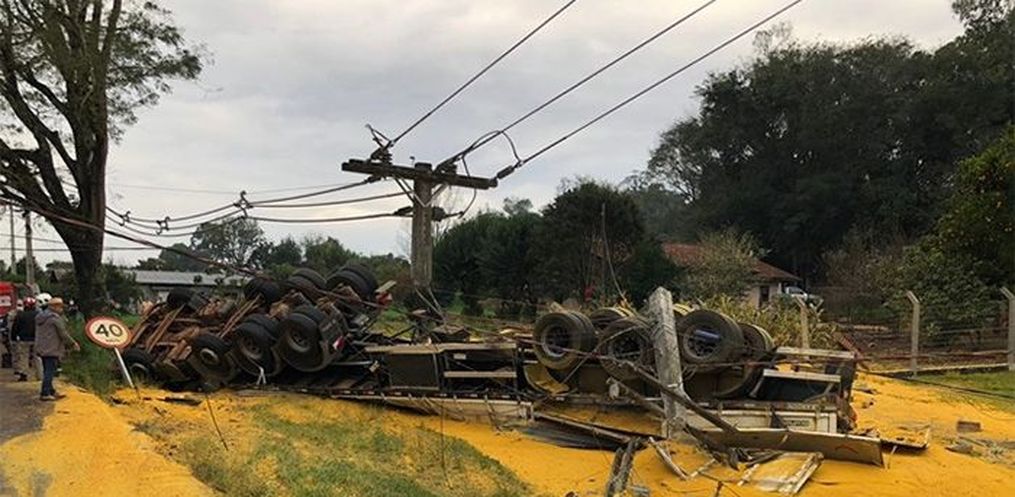 Um caminhão Scania, placas de Sarandi/RS, que tracionava uma carreta carregada com 37 toneladas de milho, tombou nesta sexta-feira, 17, na rodovia PR-566, entre Francisco Beltrão e Itapejara D’ Oeste.