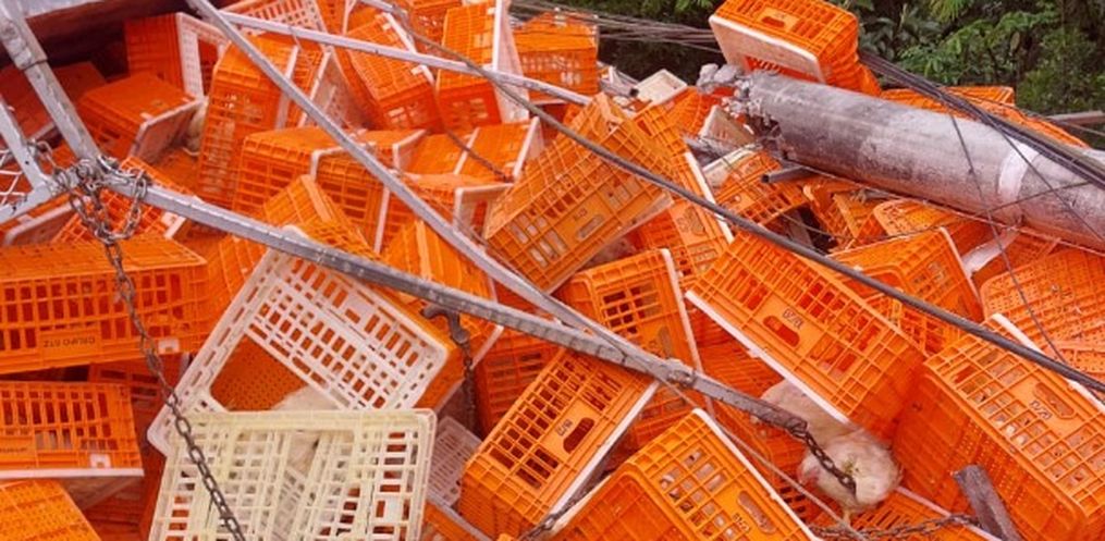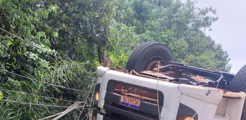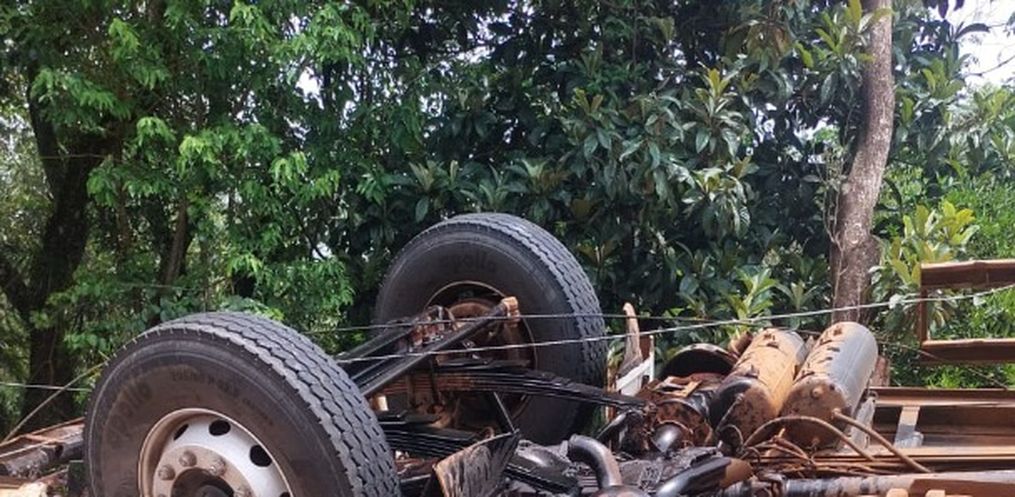 Ao chegar no local foi confirmado o acidente e realizado isolamento e gerenciamento dos riscos. O condutor tinha saído sozinho do caminhão e estava sentado há 20m do local do acidente.Ele apresentava escoriações e ferimentos no braço e perna esquerda, suspeita de lesão nas costas e relatava dores. Foi encaminhado a unidade de saúde para monitoramento.