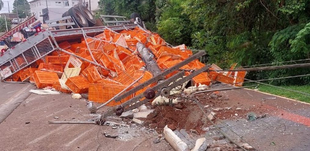 A equipe da Celesc foi acionada para a gerenciamento elétrico de fios de alta tensão que foram rompidos com o tombamento.