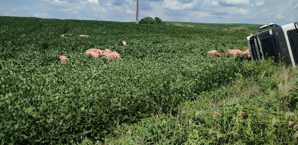 No caminhão, mais de 200 porcos estavam sendo transportados de Rodeio Bonito/RS para Toledo/PR.
