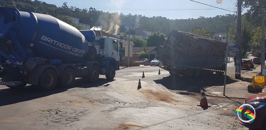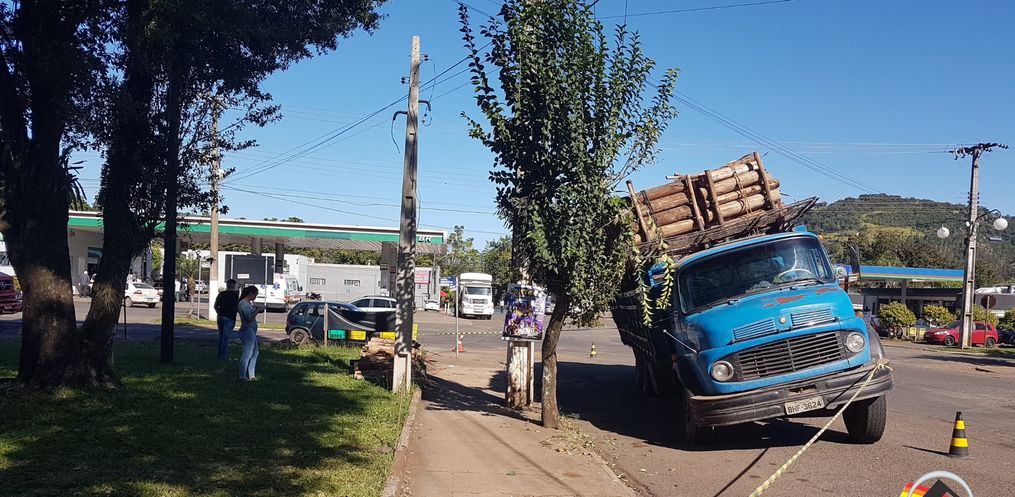 A ocorrencia aconteceu próximo das 15 horas na Avenida Uruguai, próximo ao porto da barca em Itapiranga. O motorista do caminhão falou que a carga era transportada de Linha Popi até a JBS de Itapiranga. Ele aguardava a vez para descarregar quando manobrou o caminhão vindo a quebrar.