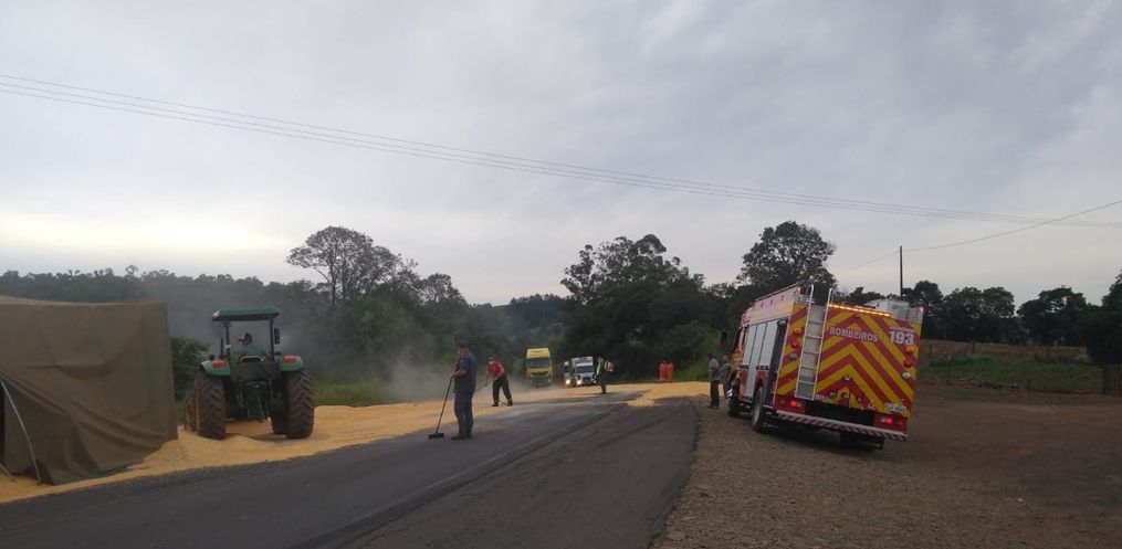 Para o Portal Peperi, os bombeiros relataram que um caminhão DAF com placas do Mercosul, carregado de milho, acabou batendo em outro veículo pesado, saiu da pista e capotou na rodovia derramando parte da carga. O caminhão estava seguindo sentido São José do Cedro a São Miguel do Oeste.