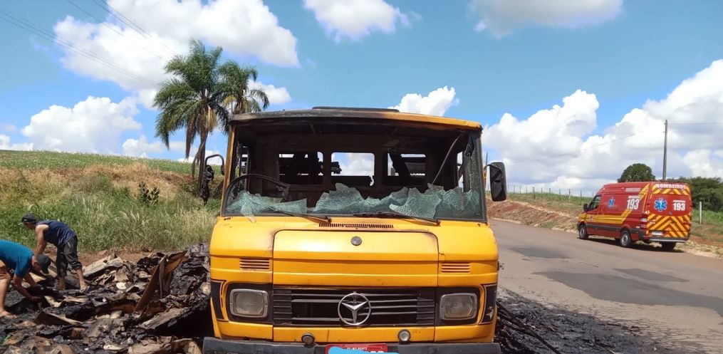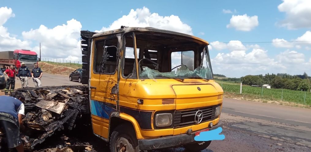 A viatura foi deslocada até a Linha Pessegueiro, zona rural de Guarujá do Sul, na BR-163. No local a guarnição deparou-se com o caminhão de cor amarela, totalmente tomado pelas chamas, bem como a carga de papel, produto que seria destinado a reciclagem.