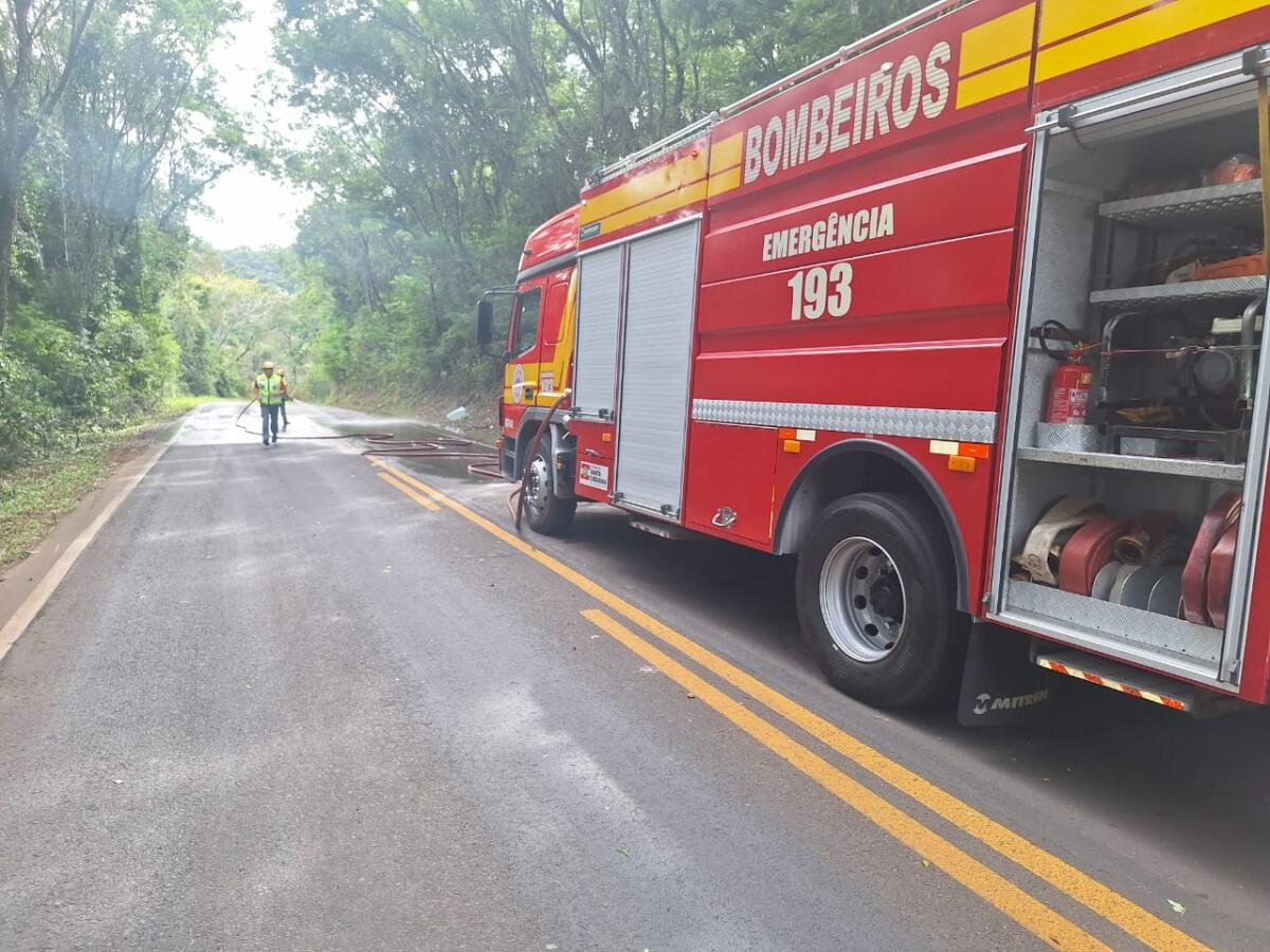 O Corpo de Bombeiros de Guaraciaba foi acionado e realizou a limpeza da pista.