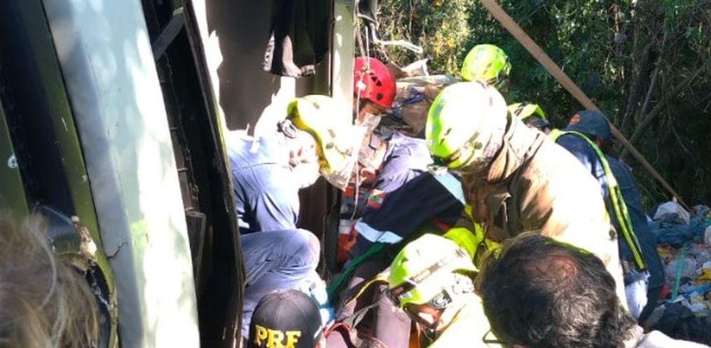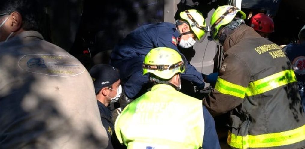 A caminhoneira de 37 anos ficou presa às ferragens e foi desencarcerada pelos bombeiros. Ela foi conduzida ao hospital de Xanxerê para avaliação.