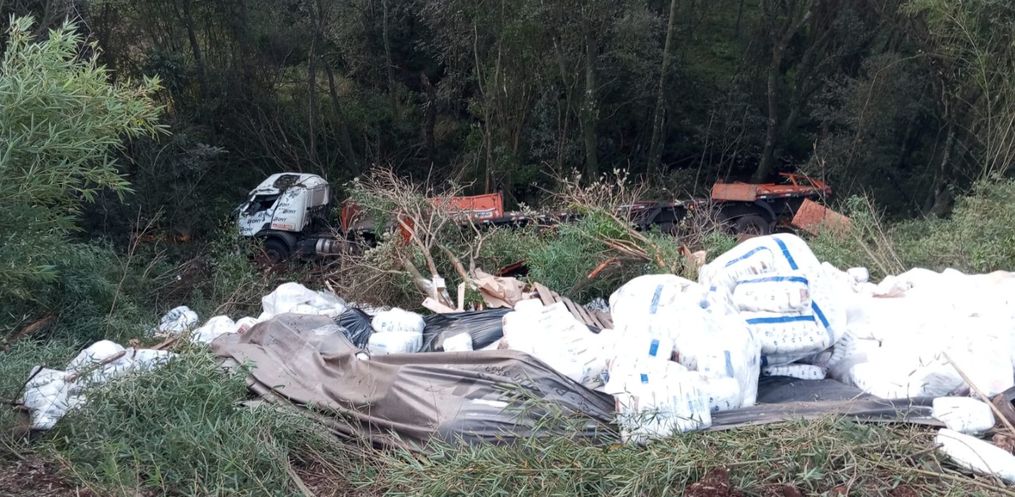 Um caminhoneiro de 32 anos escapou ileso após a carreta que dirigia capotar em uma ribanceira às margens da BR-282, na linha Navegantes, no interior de Pinhalzinho. O acidente ocorreu por volta das 17h20 desta quinta-feira, 4.