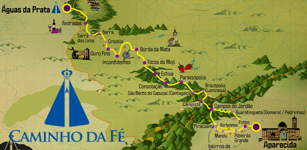 Conforme Vanduir Deters, da Natur Cicloturismo, são várias ramificações no interior de Minas Gerais e São Paulo com destino final o Santuário de Nossa Senhora Aparecida.