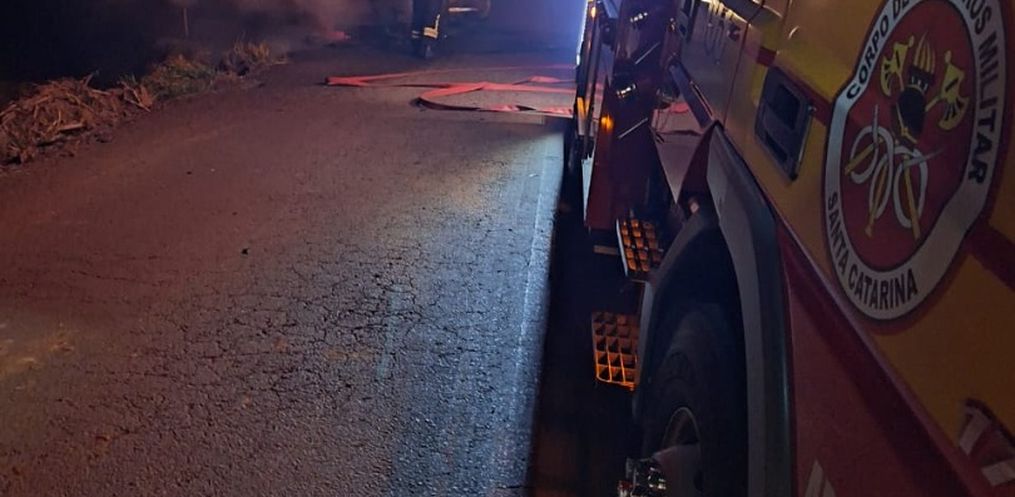 O incêndio de uma camionete Frontier foi registrado na madrugada desta quarta-feira, 11, na BR 163, na Linha Esquina Derrubada em São José do Cedro.