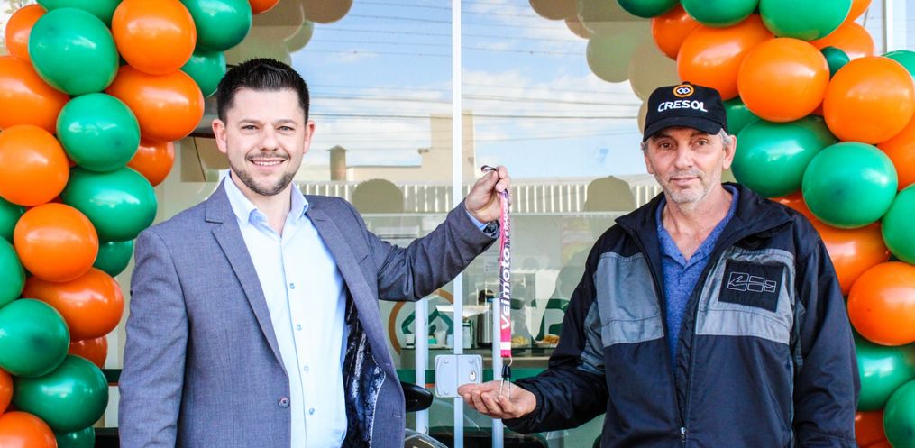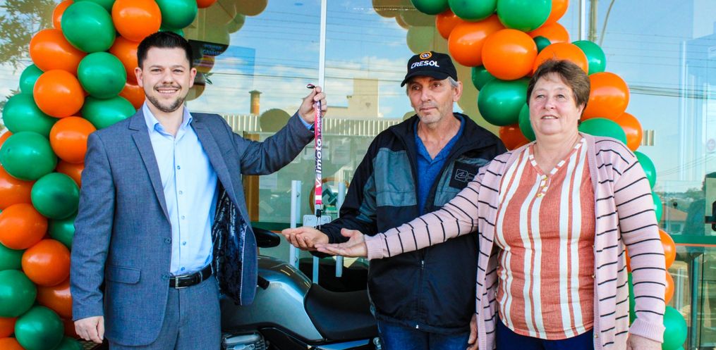 A Campanha Poupar para Ganhar da Cresol Fronteiras PR/SC/SP/ES entregou uma moto 0KM em São Miguel do Oeste, nesta sexta-feira, 16.