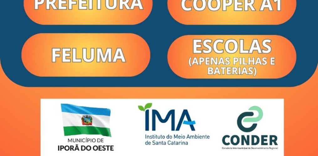O Município de Iporã do Oeste em parceria com o Instituto do Meio ambiente (IMA), e o Consórcio Intermunicipal de Desenvolvimento Regional (CONDER) está realizando mais uma etapa da campanha “Penso, Logo Destino”, que visa a conscientização da população para o descarte correto de materiais recicláveis, conforme a Lei da Logística reversa. A campanha segue até essa quarta feira, 04.