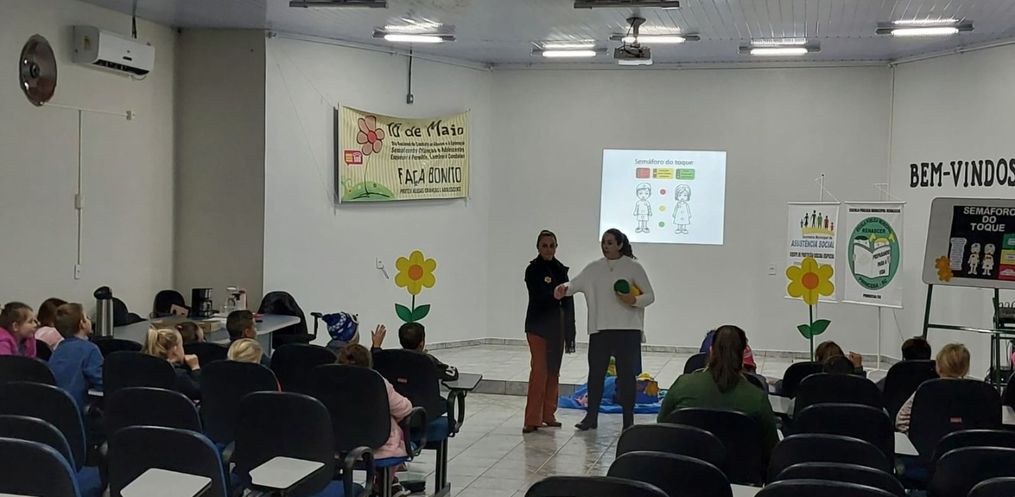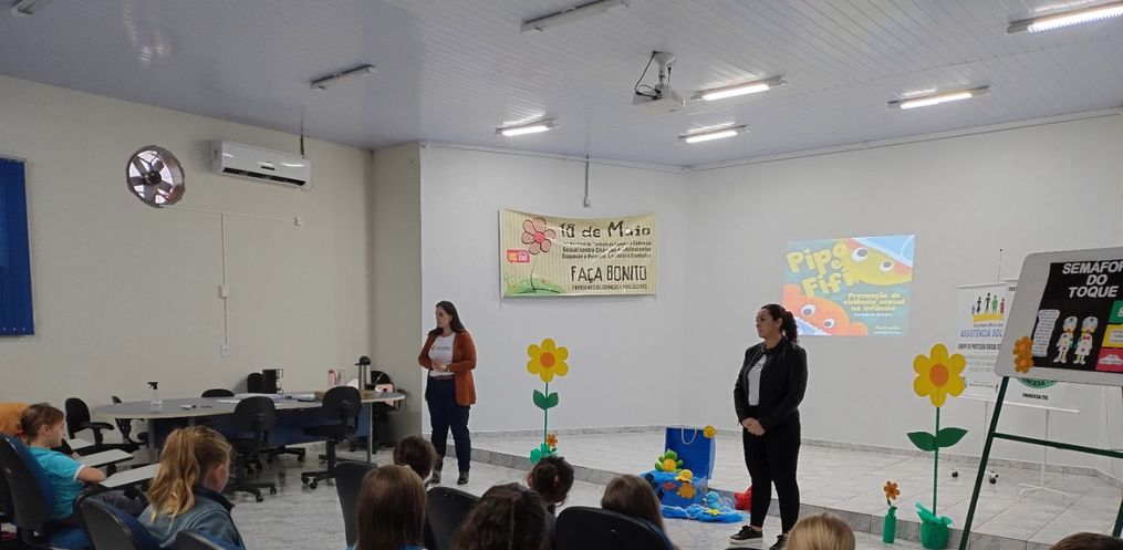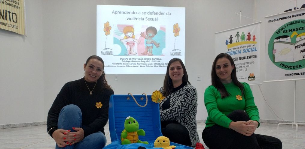 As profissionais Cariela Martinazzo Jank, Maristela Barp e Maira Gheller, realizaram atividades sobre as partes do corpo, o toque do SIM e do Não, vídeo informativo, bem como realização de atividade de desenho sobre quem confio/ Não confio.
