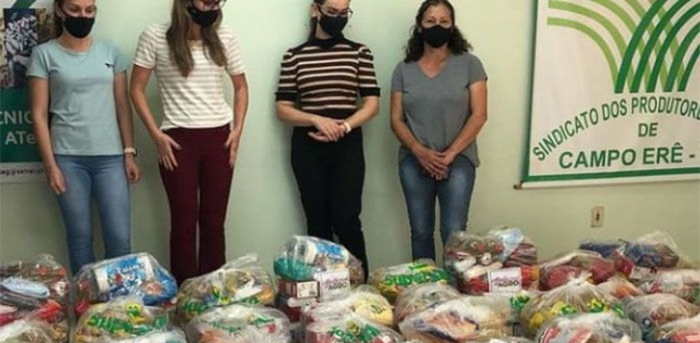 O Sindicato dos Produtores Rurais de Campo Erê/SC organizou, no mês de maio, uma campanha para doação de alimentos no município. A iniciativa oportunizou arrecadar em apenas uma semana 1,3 tonelada de alimentos que foram distribuídos para famílias carentes do município. As doações foram registradas no Programa Agro Fraterno. O mérito foi das mulheres e a ação marcou o início do grupo “Mulheres do Agro”, que reúne mais de 70 associadas e esposas de associados da entidade.