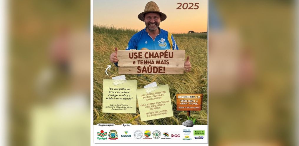 O município de Bandeirante, realiza nesta quarta-feira, 19, o lançamento da campanha “Use Chapéu e Tenha Mais Saúde”. A iniciativa chega à 19ª edição, com o objetivo de conscientizar a população sobre a prevenção do câncer de pele, especialmente entre trabalhadores rurais.