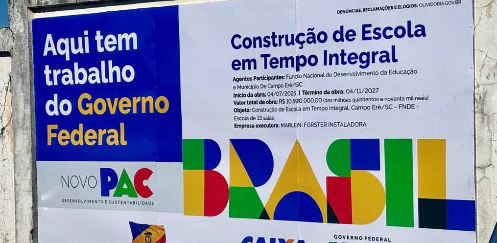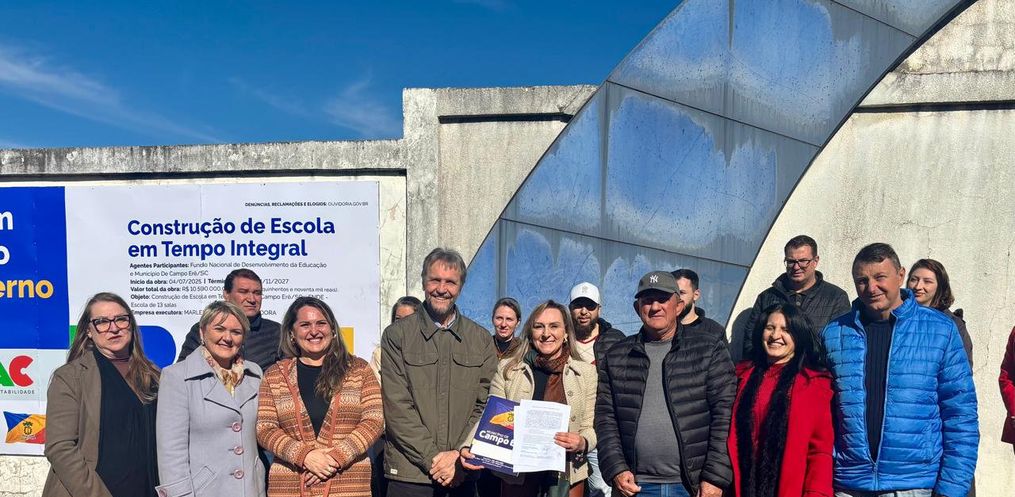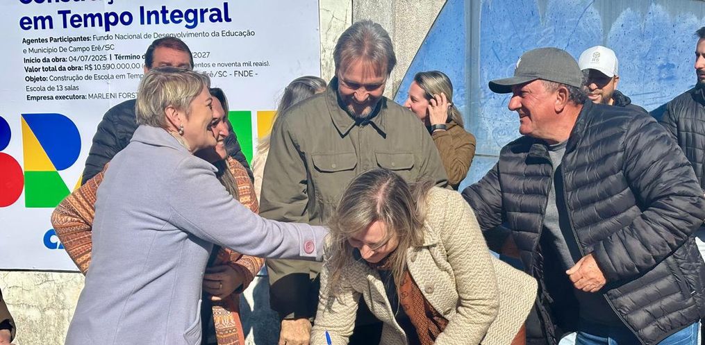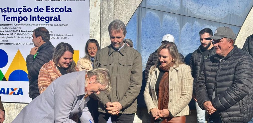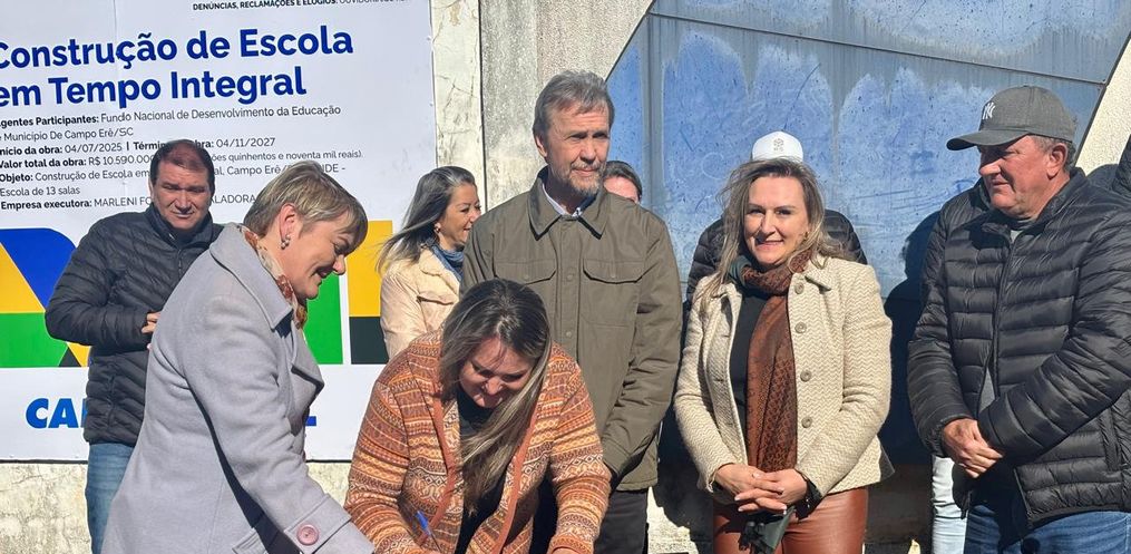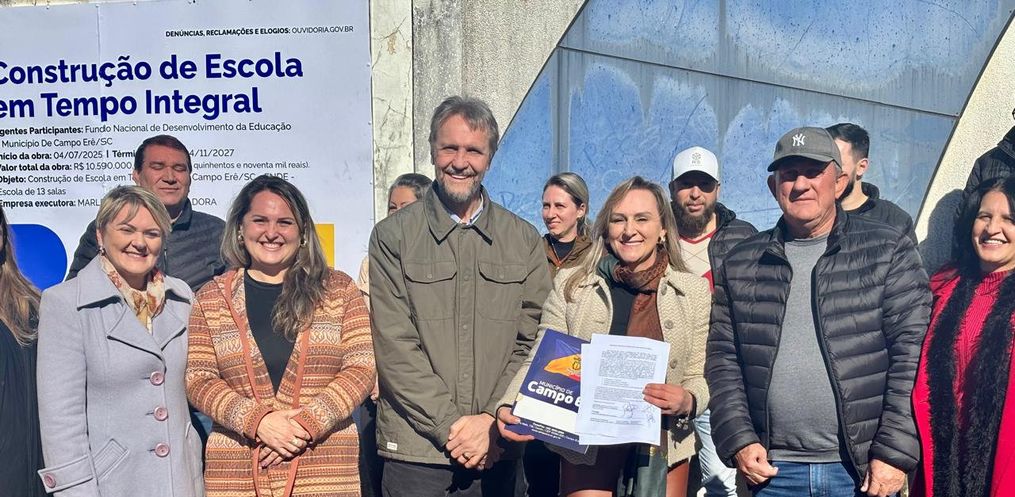 A Prefeitura de Campo Erê realizou nesta sexta-feira, 4, a solenidade de assinatura da ordem de serviço para a construção da nova Escola Municipal de Tempo Integral Professora Maria Lídia de Lima, no bairro São Francisco.
