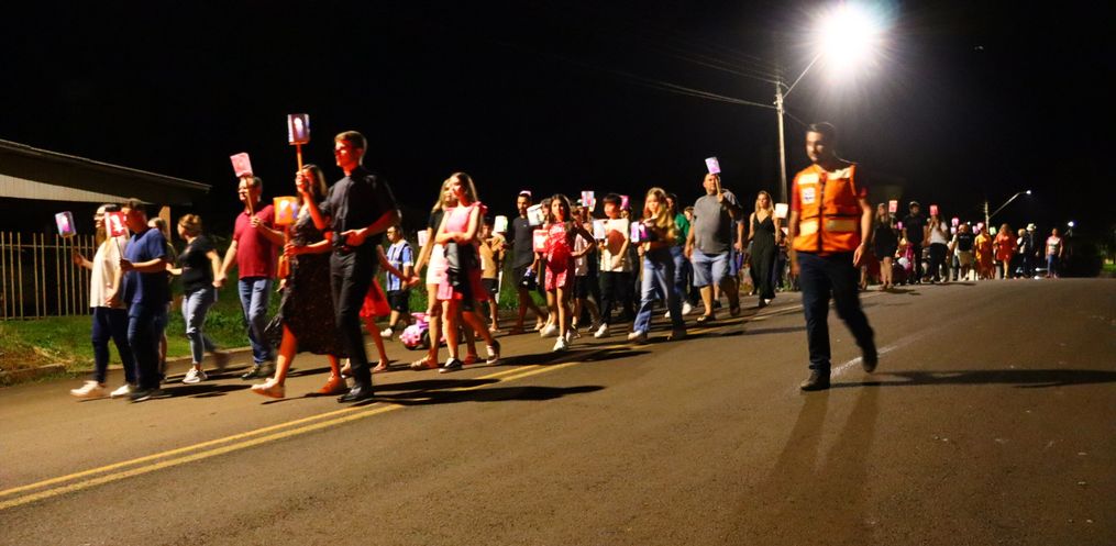 A abertura do Natal Encantado em Campo Erê aconteceu na noite deste sábado, 23, com uma programação especial. A festividade começou com a tradicional caminhada das lanternas, que reuniu igrejas evangélicas e católicas do município. Os participantes percorreram algumas ruas do centro até chegarem à Praça da Igreja Matriz.