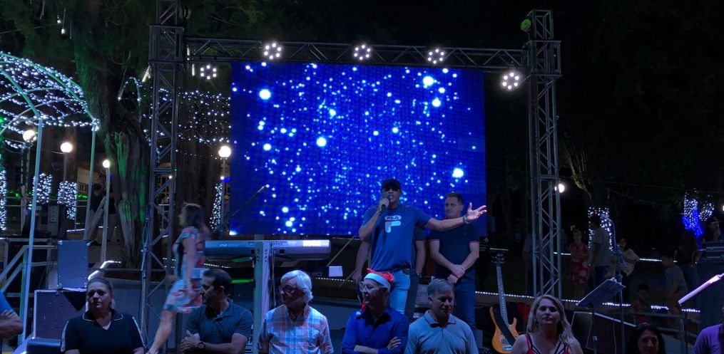 O evento aconteceu nesta quinta-feira, 23, na praça da Matriz de Campo Erê, contando com a presença do Papai Noel distribuindo doces para as crianças, brinquedos infláveis e apresentações musicais locais com o Trio da Terra, Portal Serrado e Dj Pipper.