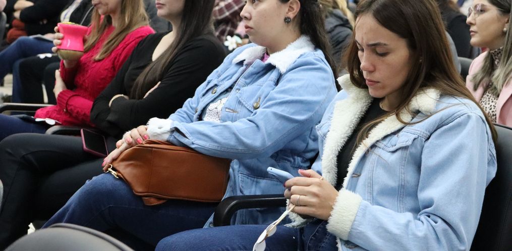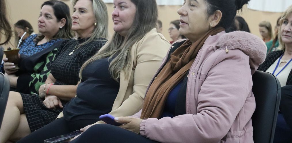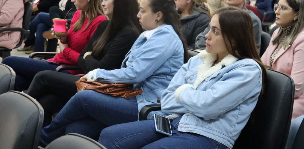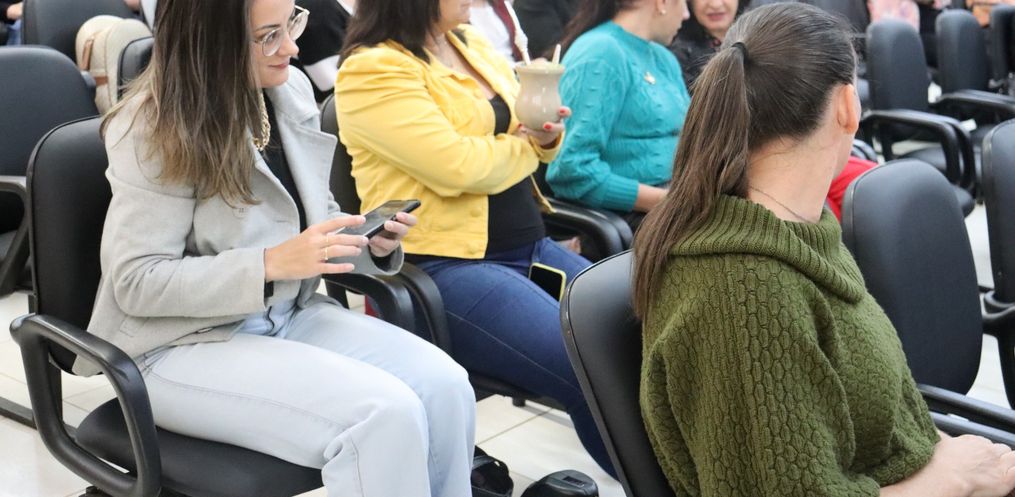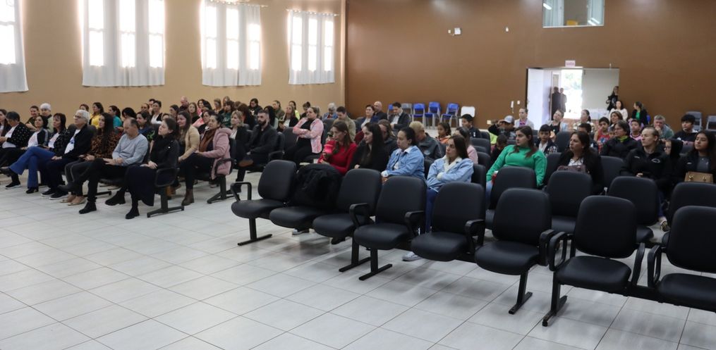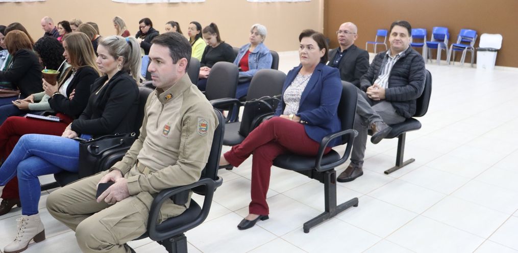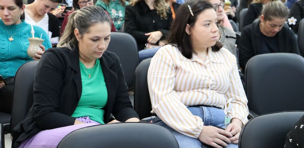 As técnicas da Secretaria Municipal de Educação de Campo Erê, Marisa Luzia Holdefer, Psicóloga Escolar, e Fernanda Patrícia Schoeninger, Orientadora Educacional, fizeram uma palestra envolvendo todos os participantes do encontro.