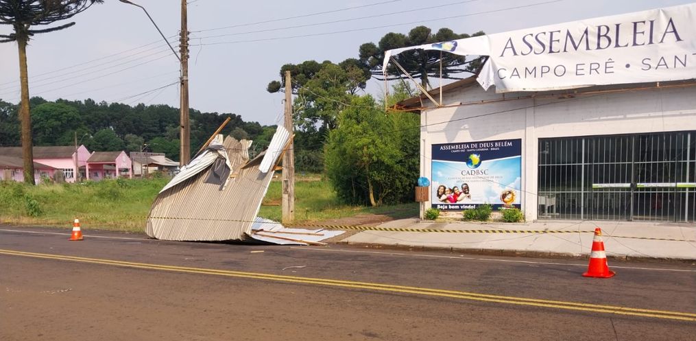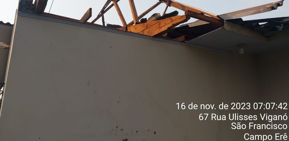 Na madrugada desta quinta-feira, 16 toda a região teve registro de temporal com fortes ventos. De acordo com o diretor da Defesa Civil em Campo Erê, André Rychik, durante a manhã foi feita a contagem dos estragos na cidade, onde casas ficaram parcialmente destelhadas.