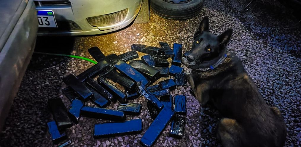 Segundo a PM, o canil foi acionado e se deslocou até o veículo Santana, com placas de Riqueza, apreendido no último dia 09/11, no bairro Santa Rita, com mais de 22kg de maconha.