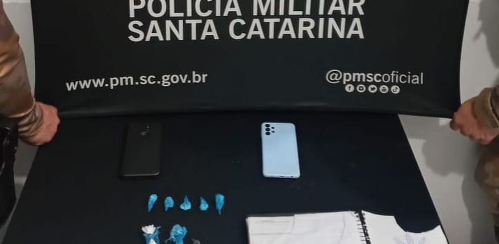 Na sequência, a equipe se deslocou até a residência dos suspeitos. No local, uma mulher de 27 anos também foi abordada. Com apoio de um cão farejador, os policiais localizaram mais cinco porções de cocaína com o mesmo tipo de embalagem, além de R$ 301 em dinheiro, celulares, plásticos usados para embalar a droga e um caderno com anotações do tráfico e símbolos de facção criminosa.