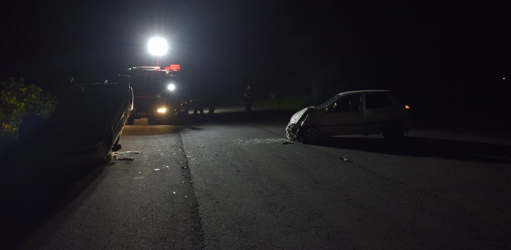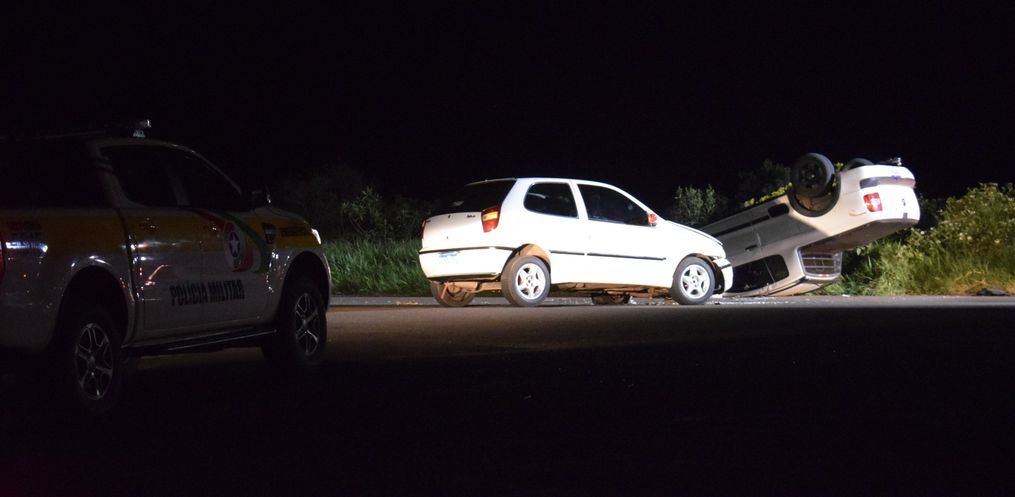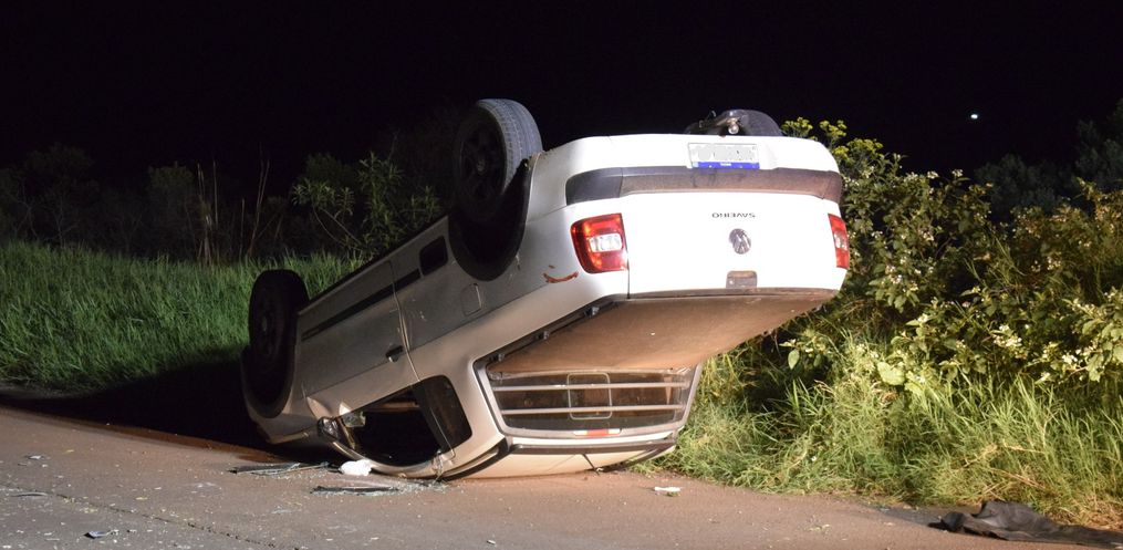 O fato foi por volta das 20h e no local, segundo a PM uma Saveiro que estava em uma estrada secundaria invadiu a preferencial de um Pálio. Com o impacto, a camionete capotou.