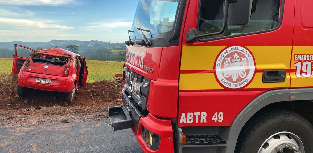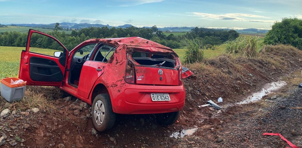 Um acidente na final da tarde deste sábado, 10, provocou ferimentos graves em uma idosa no interior de Cunha Porã. Por volta das 17h15, o condutor de um Up perdeu o controle da direção e capotou na estrada de Linha Cristo Rei em direção a Cunhataí. A caroneira do veículo, uma mulher de 76 sofreu um ferimento na região frontal do crânio, suspeita de fratura de nariz com sangramento ativo e escoriações. Ela foi socorrida e levada para o Hospital de Cunha Porão. Outros dois ocupantes do carro tiveram ferimentos leves.