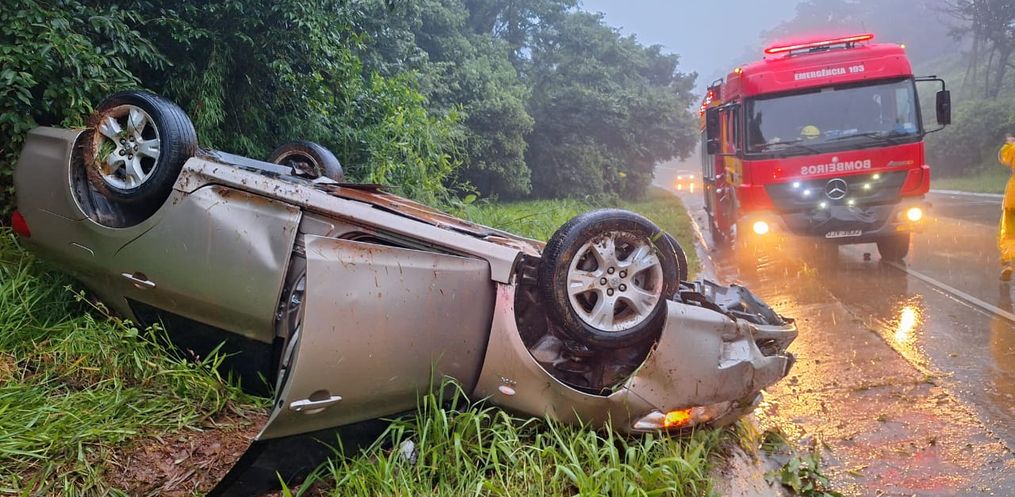 Um capotamento na BR-163, em Guataparema, em Guaraciaba mobilizou o Corpo de Bombeiros nesta quinta-feira, 28. O acidente ocorreu por volta das 17h40, quando o veículo saiu da pista e capotou às margens da rodovia.