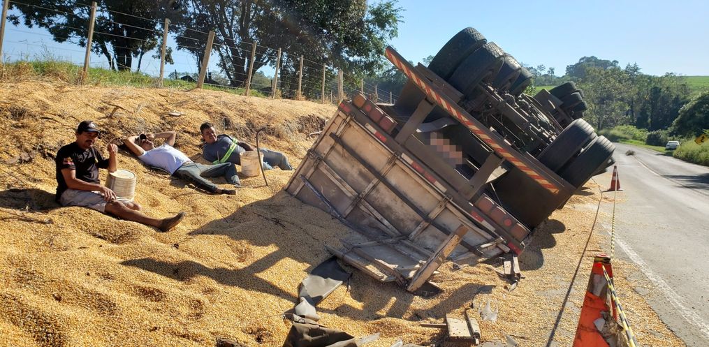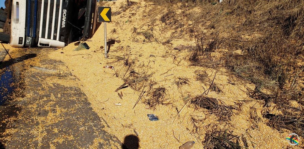 O tombamento ocorreu no local conhecido como “curva da morte”, depois que um dos pneus do veículo de carga atingiu um tachão da rodovia, fazendo com que o condutor perdesse o controle.