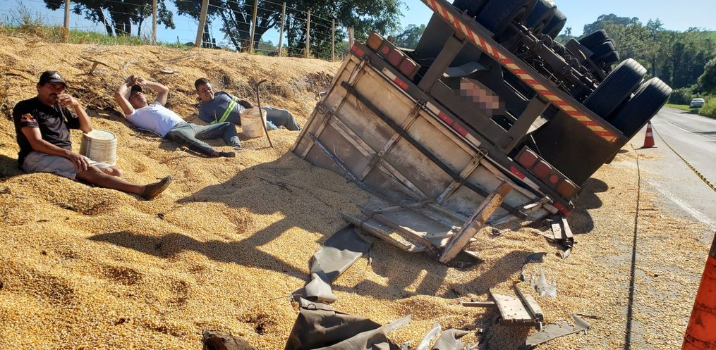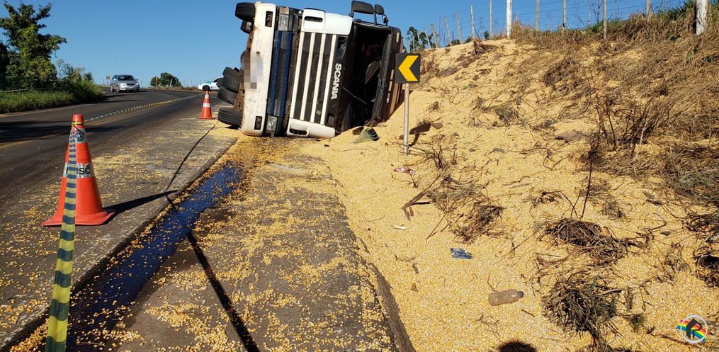 A carga de milho ficou espalhada no local e uma equipe da cooperativa vai fazer o recolhimento nesta segunda-feira, 03. O trânsito não precisou ser interrompido por causa do tombamento da carreta.
