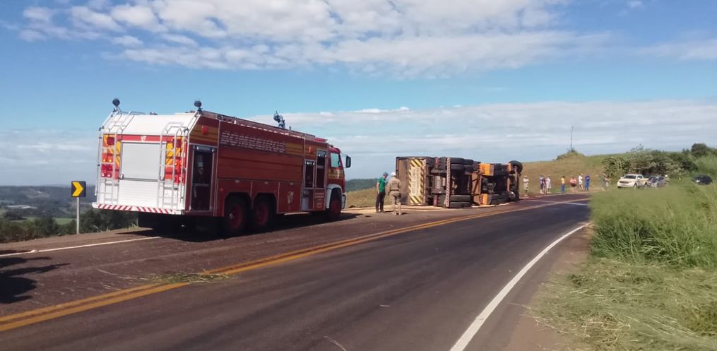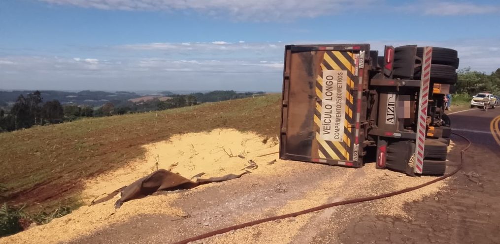 Um acidente envolvendo uma carreta carregada com milho foi registrado por volta das 10h20 desta terça feira, na SC-163, entre a divisa das comunidades de Linha Cristo Rei e Beato Roque. O motorista do veículo com placas Mercosul não conseguiu fazer a curva, ocasionando o tombamento.