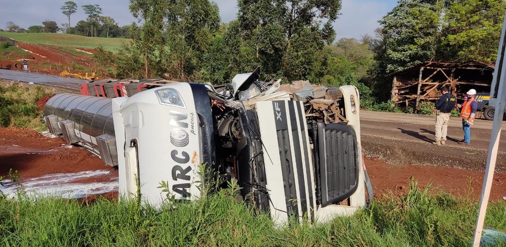 A reportagem do Portal Peperi esteve na BR 163 no trecho da rodovia em São José do Cedro onde uma carreta, carregada de leite, acabou tombando na margem da pista de desvio sobre o Lajeado Cedro. O acidente ocorreu por volta das 7h50 da manhã desta sexta-feira (24).