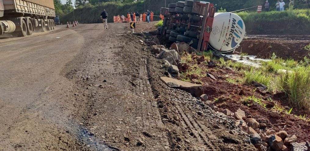 O motorista do caminhão tombado, relatou que o fato ocorreu devido à pista ser estreita para trafegar dois veículos de transporte pela pista temporária. O local está servindo como desvio para os motoristas que pretendem trafegar de São José do Cedro/Guarujá do Sul devido às obras que estão ocorrendo próximo ao viaduto em São José do Cedro.