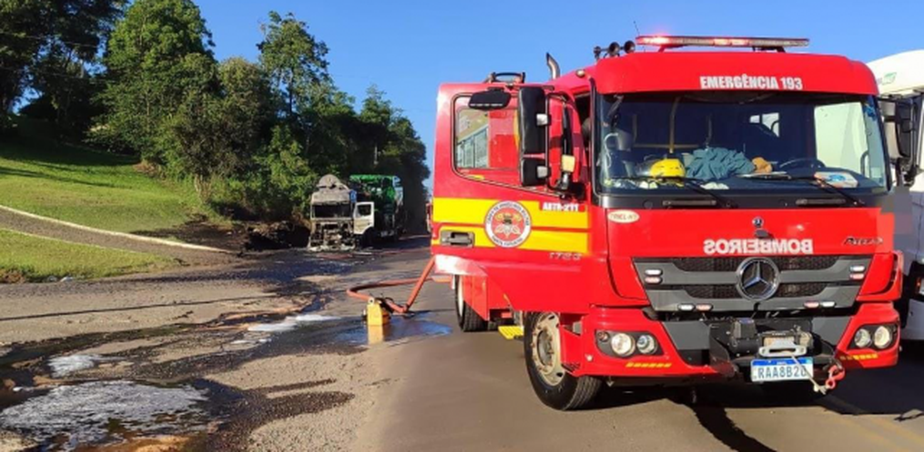 Um incêndio atingiu uma carreta cegonheira na tarde desta terça-feira, 17, por volta das 17h10, no km 168, na BR-282, em Iraceminha. Apesar do susto, não houve vítimas.