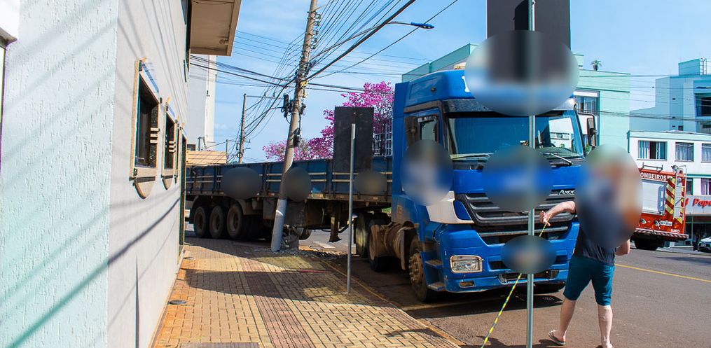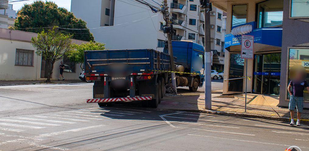 O condutor da carreta contou aos PMs, que transitava pela Duque de Caxias e que ao tentar acessar a Sete de Setembro não conseguiu dobrar o suficiente, oque ocasionou a colisão da parte da carreta no poste.