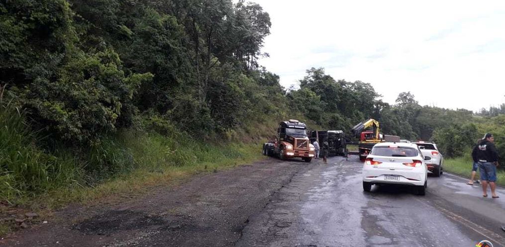 O trânsito de caminhões também ficou interrompido e apenas a passagem de veículos de passeio foi permitida durante a retirada do caminhão e o trânsito foi liberado por volta das 19h30 de domingo.