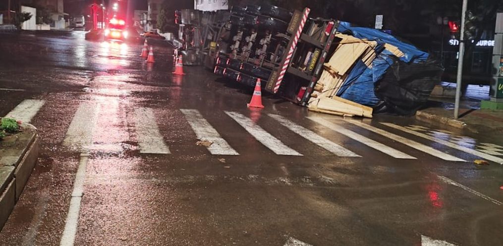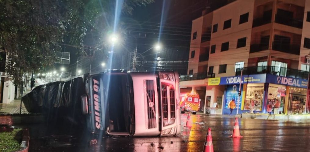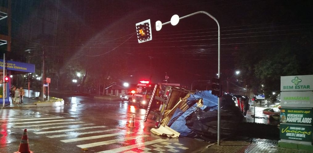 Na madrugada desta quarta-feira, 28, por volta das 3h, o Corpo de Bombeiros atendeu um tombamento de carreta na Avenida Brasil, esquina com a rua Guilherme Hack, no centro de São Lourenço do Oeste.