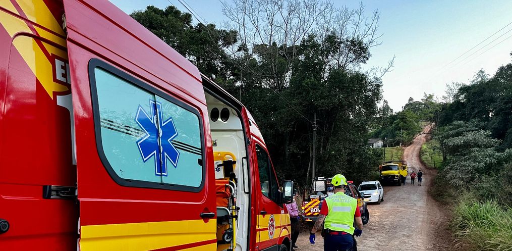 Durante uma subida, o idoso tentou trocar de marcha, mas o veículo não engrenou, começando a recuar de ré. Nesse momento, ele perdeu o controle e o veículo saiu da estrada, colidindo com um barranco.